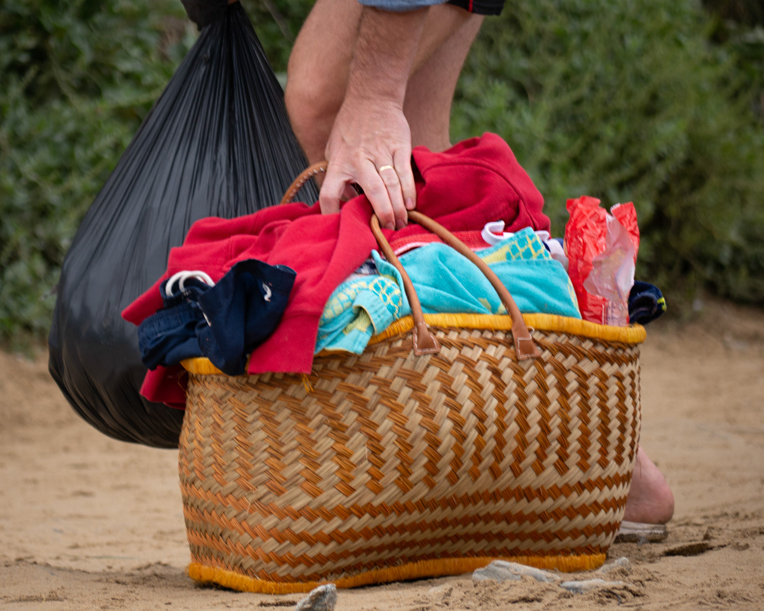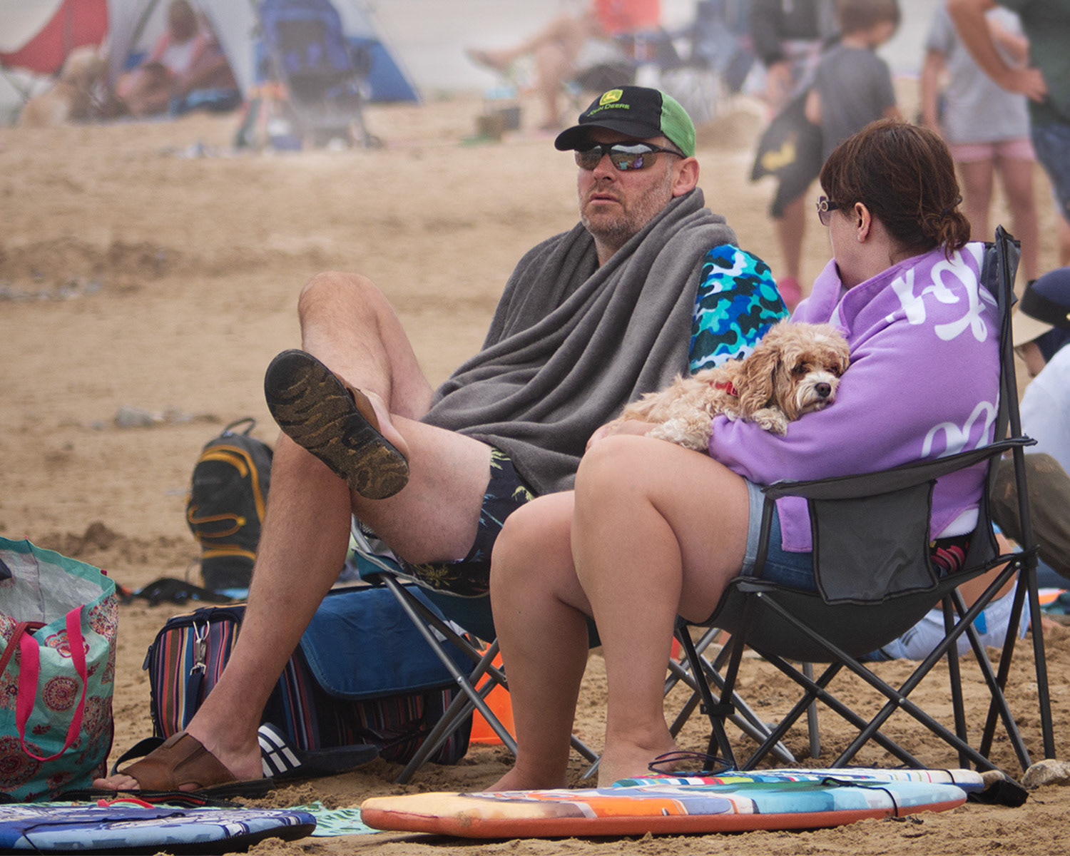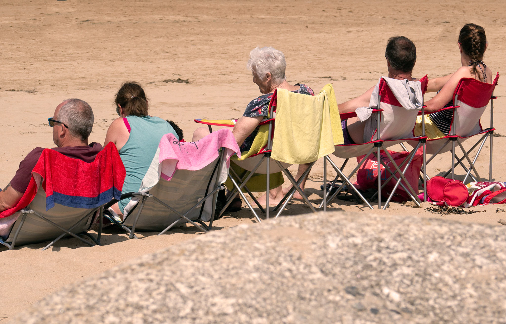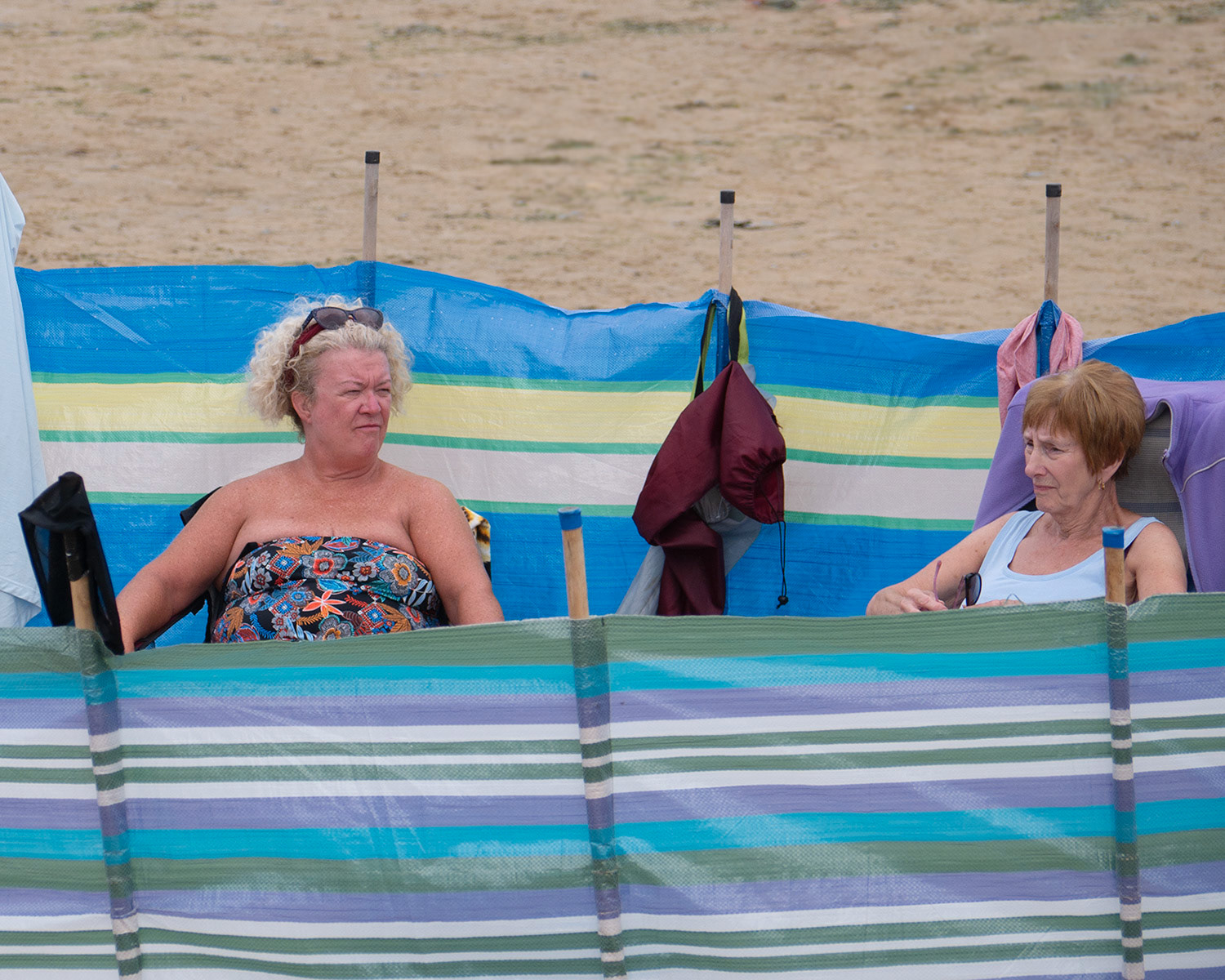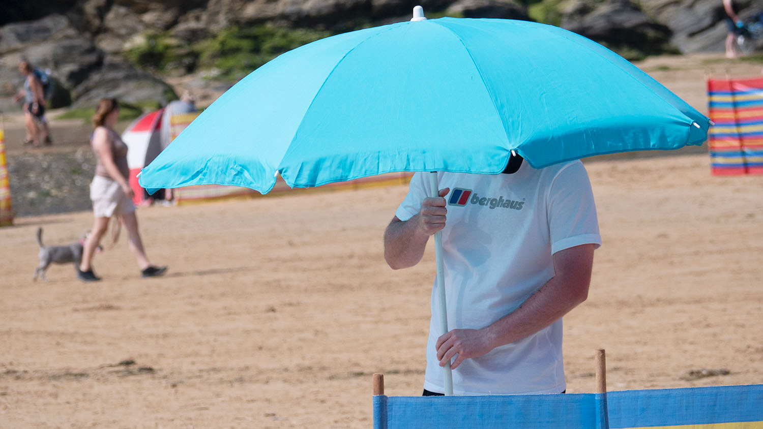 Beachgoers on holiday in North Cornwall and their tribal love of windbreaks, pop up tents & assorted 'holiday gubbins'.